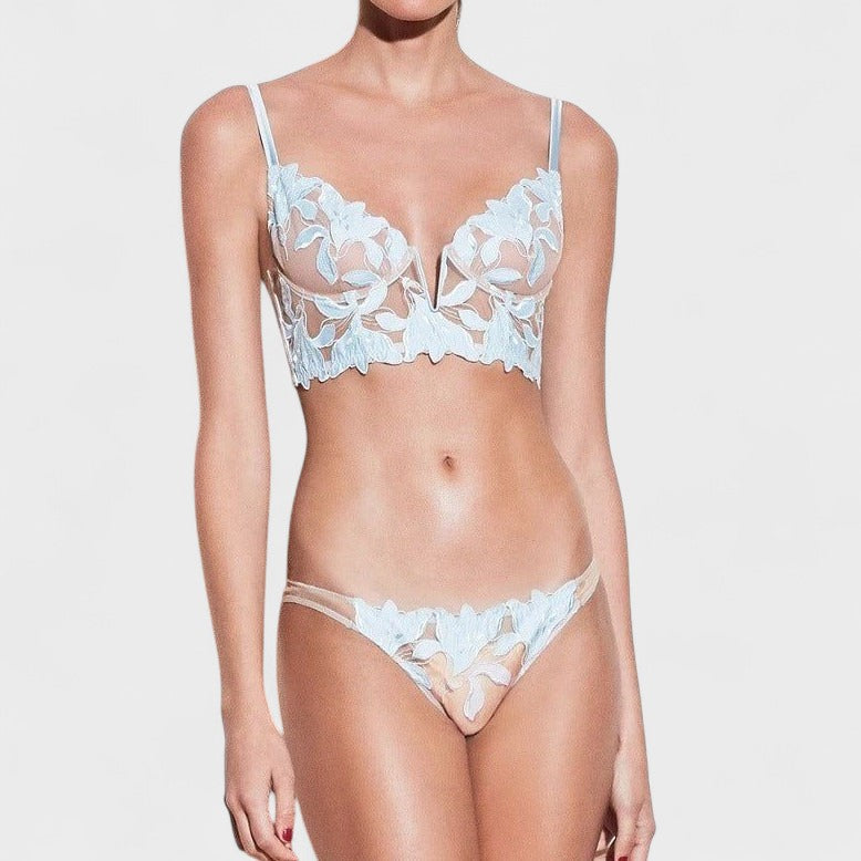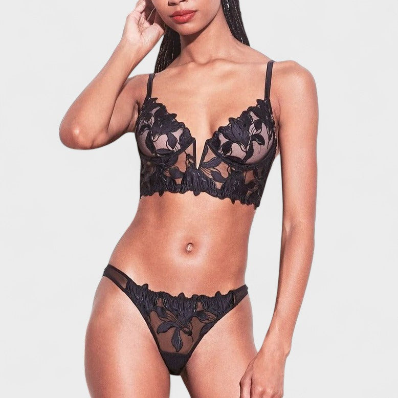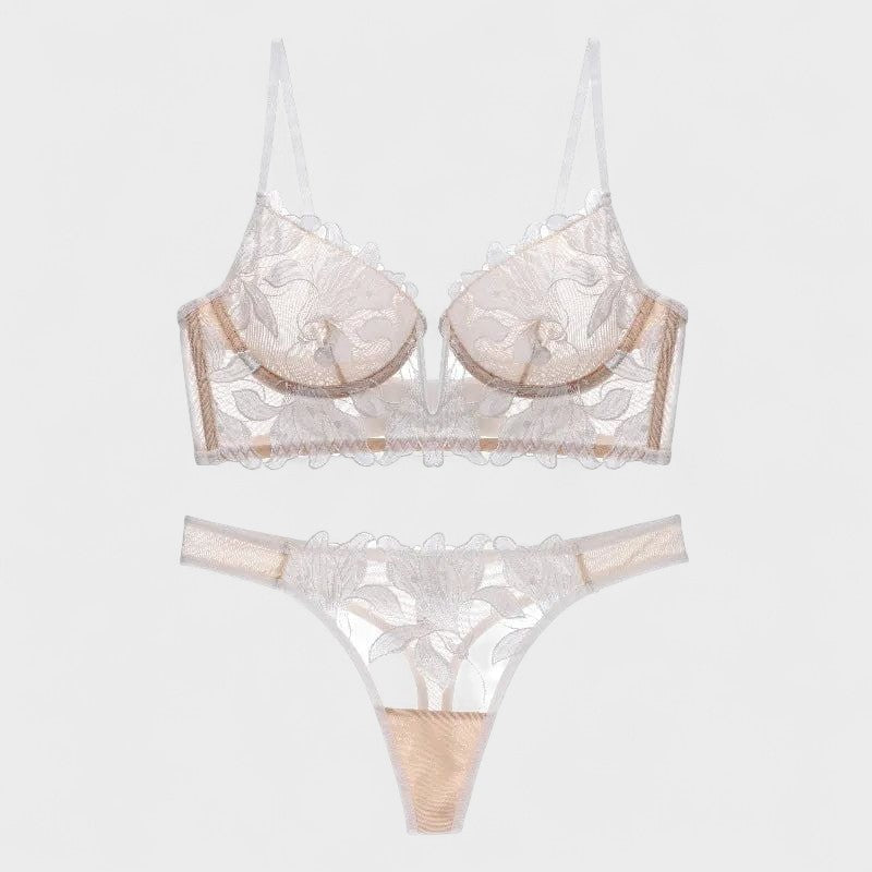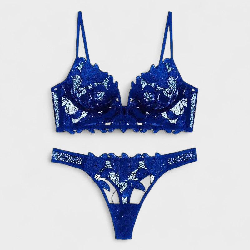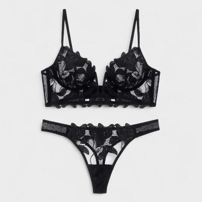 סט תחרה אלגנטי ומפתה, שמשלב עדינות, נוחות ועיצוב בלתי ניתן לעמידה. חזיית תחרה עם רקמה מדויקת וחיתוך מעודן מדגישה בצורה מושלמת את מחשוף החזה, בעוד שהתחתונים עם פרטים חושניים מדגישים את הסילואט שלך. הסט הזה הוא הבחירה האידיאלית לאירועים מיוחדים וגם לרגעים שבהם את רוצה להרגיש בטוחה ויוצאת דופן.