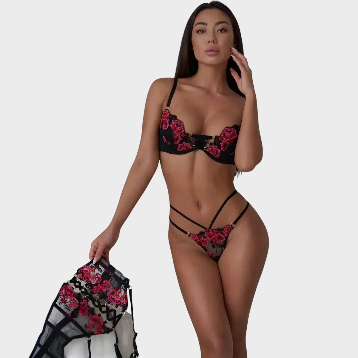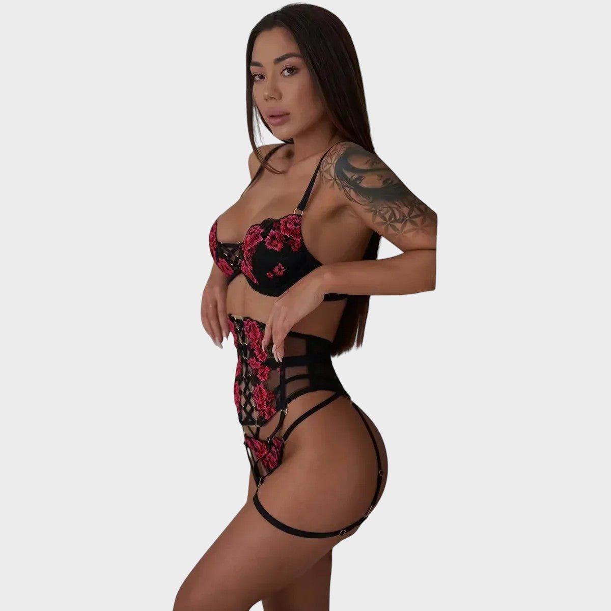 גלה את האלגנטיות והסקסיות האולטימטיביות עם שרה | סט תחתונים תלת-חלקי. הקולקציה הבלעדית הזו משלבת אלגנטיות, נוחות וסגנון, מה שהופך אותה לתוספת חיונית לארון התחתונים שלך. אידיאלית לערבים רומנטיים או להזדמנויות מיוחדות, הסט הזה מציע גם חושניות וגם מראה יוקרתי.