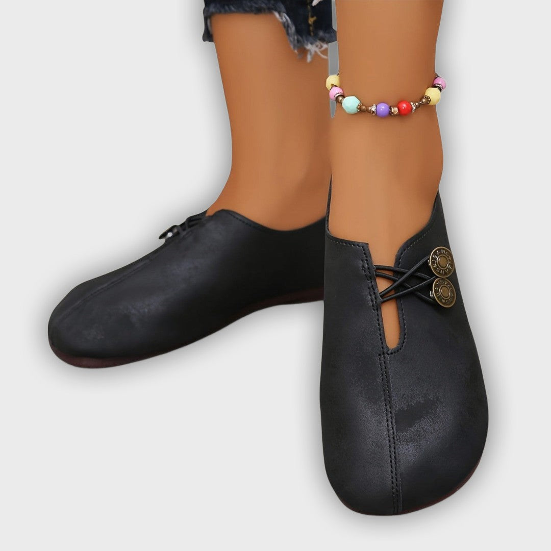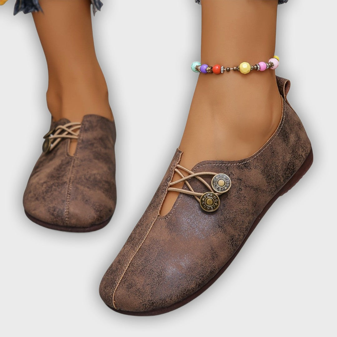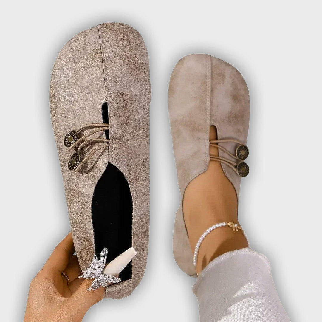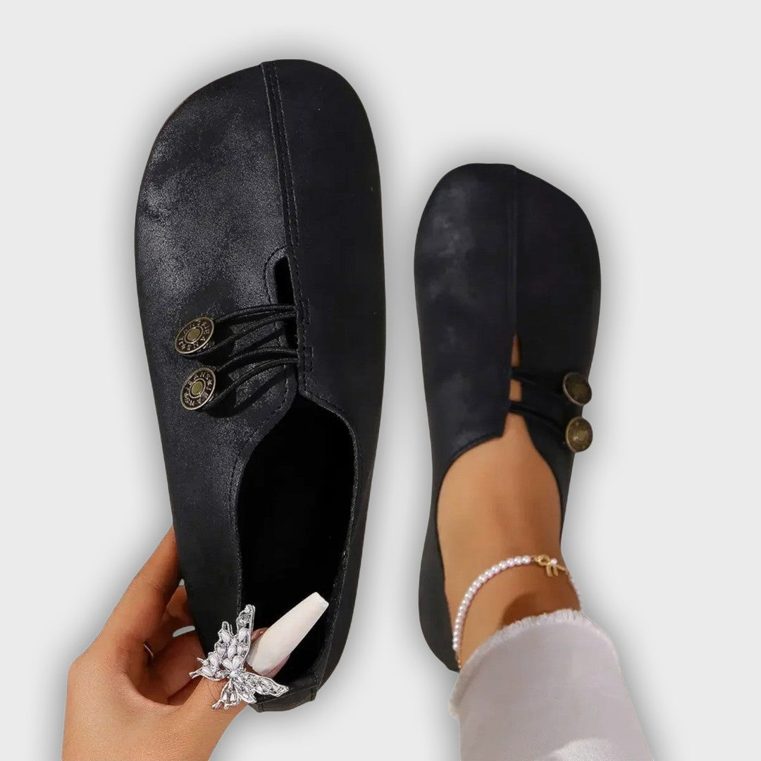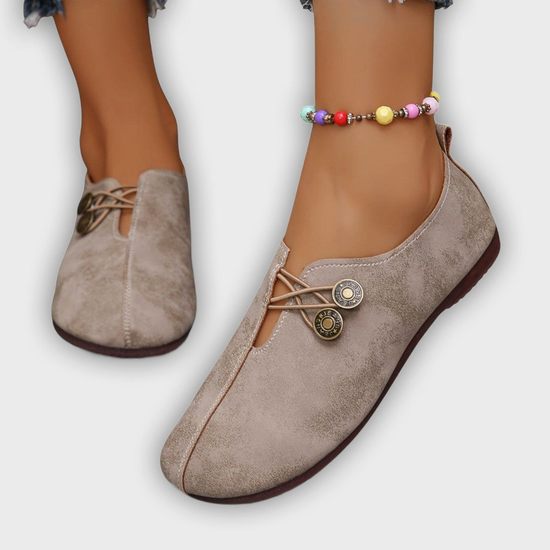 פרטים אלגנטיים: הרצועות האלסטיות עם הכפתורים הדקורטיביים יכולות ללבוש ולהסיר את הנעליים פשוט ובו בזמן מוסיפות נגיעה של סגנון.