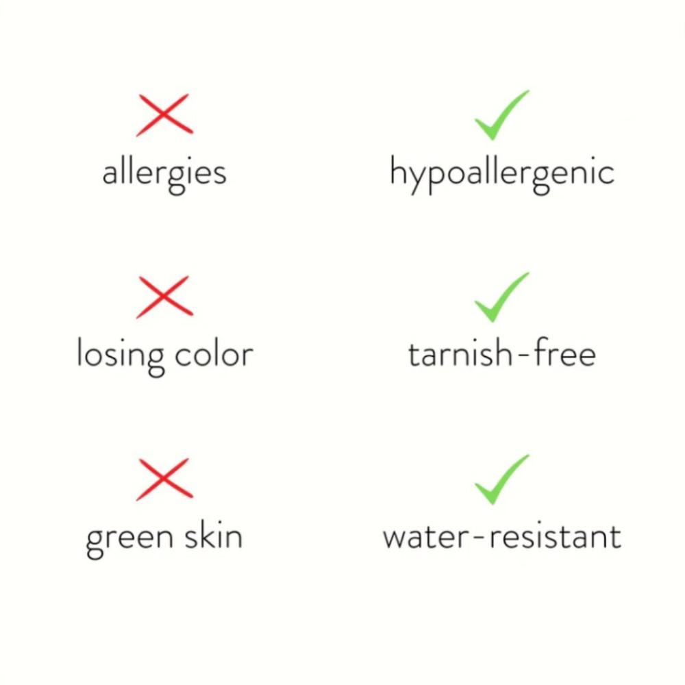 עשויה מפלדת אל חלד עמידה במים, לא תצטרכו לדאוג יותר לאצבעות ירוקות, דהייה או חמצון.